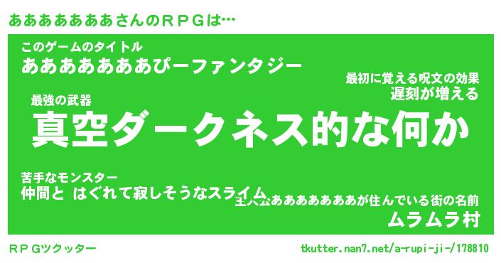 | 男性向けラノベタイトル風あだ名 | 『アアアアアアアアートオンライン』 |
