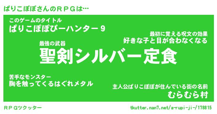 | 伝説のあだ名 | 『伝説の傭兵ぱりこぽぽ』 |