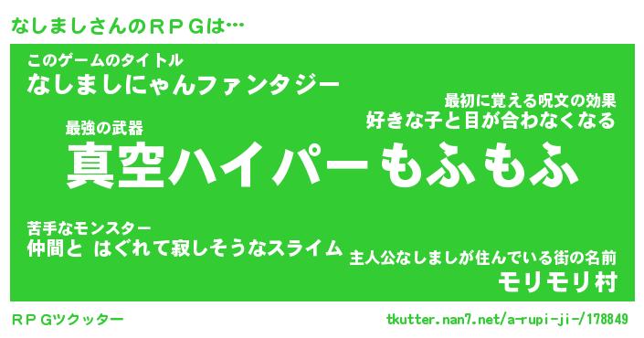| 男性向けラノベタイトル風あだ名 | 『ナシマシアートオンライン』 |