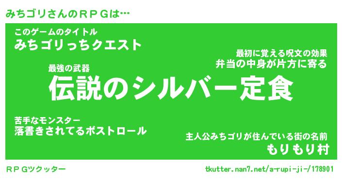 | 料理風あだ名 | 『節約★みちゴリと油揚げの玉子丼』 |