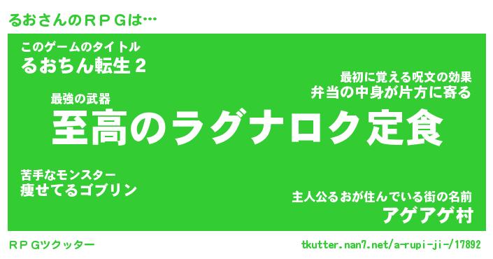 | ファンタジー風あだ名 | 『ルオフェル』『エターナルルオー』 |