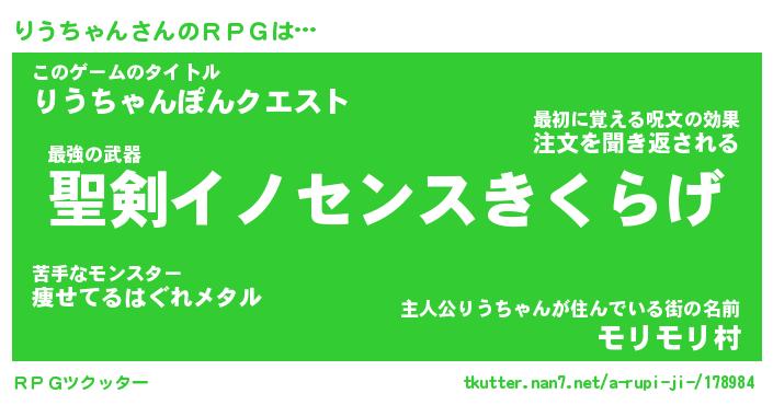 | 胡散臭い通販商品みたいなあだ名 | 『必ず成功する霊験あらたかなお札…その名も「りうちゃん」』 |