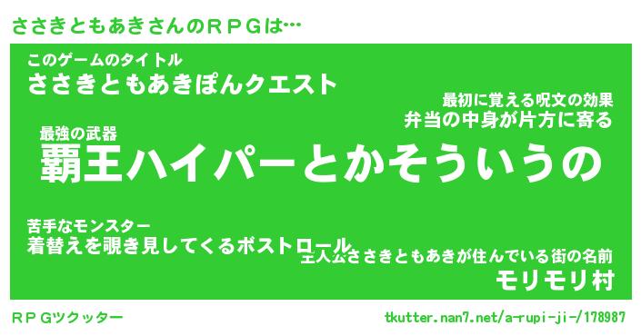 | 伝説のあだ名 | 『封印されし竜騎士ささきともあき』 |