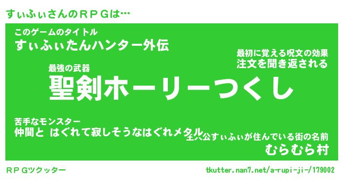 | 男性向けラノベタイトル風あだ名 | 『すぃふぃの憂鬱』 |