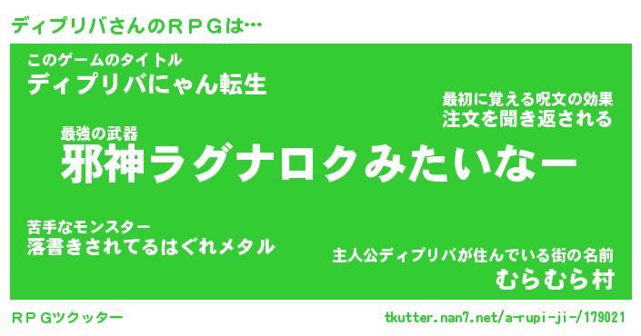 | 伝説のあだ名 | 『封印されし竜騎士ディプリバ』 |