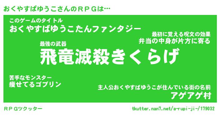| 男性向けラノベタイトル風あだ名 | 『オクヤスバユウコアートオンライン』 |