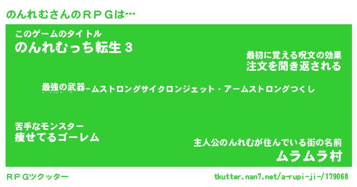 | 男性向けラノベタイトル風あだ名 | 『のんれむの憂鬱』 |