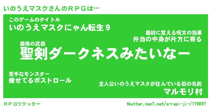 | 男性向けラノベタイトル風あだ名 | 『いのうえマスクの憂鬱』 |