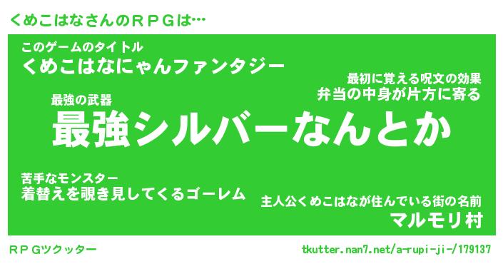 | ファンタジー風あだ名 | 『クメフェル』『エターナルクメコハナー』 |