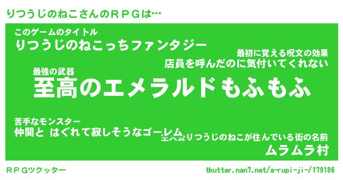 | 意味不明あだ名 | 『ペロリンりつうじのねこ』 |