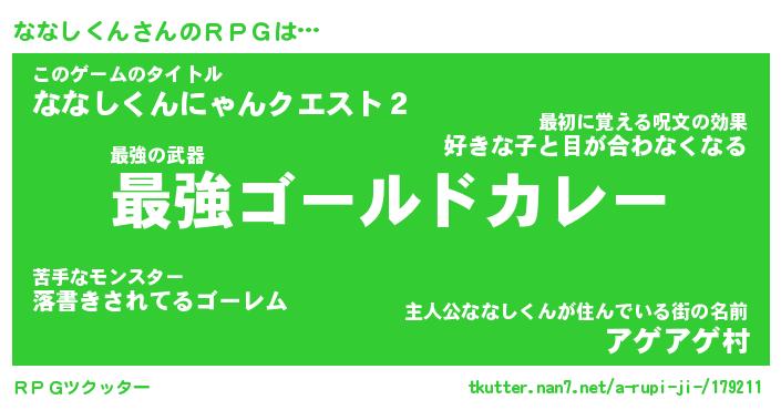 | 男性向けラノベタイトル風あだ名 | 『ナナシクンアートオンライン』 |