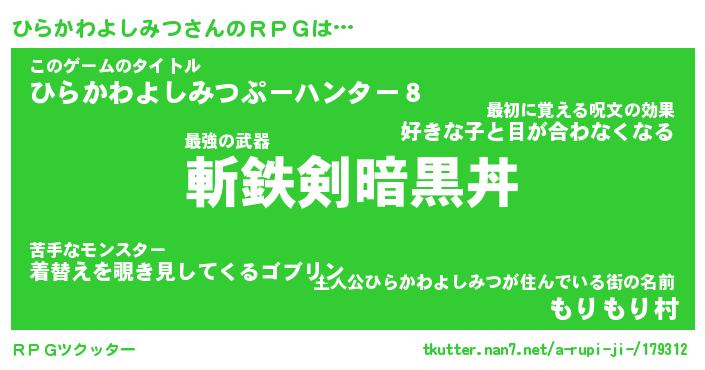| 男性向けラノベタイトル風あだ名 | 『ひらかわよしみつの憂鬱』 |