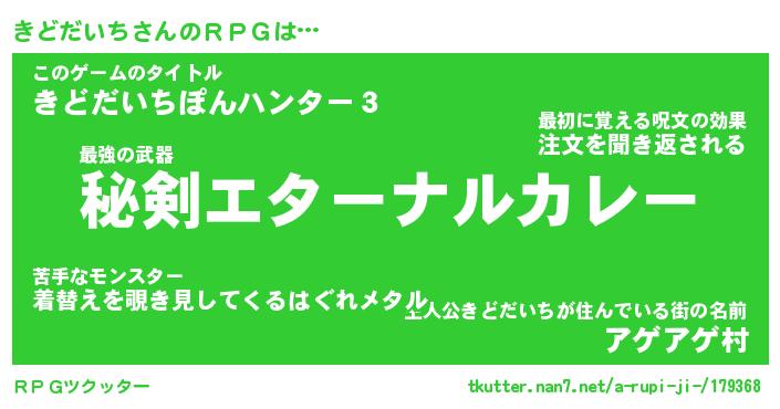 | 男性向けラノベタイトル風あだ名 | 『きどだいちの憂鬱』 |