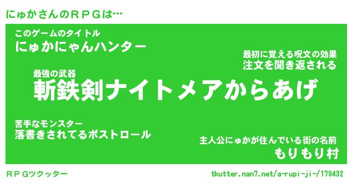 | 男性向けラノベタイトル風あだ名 | 『にゅかの憂鬱』 |