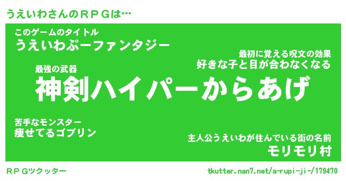 | 女子向けラノベタイトル風あだ名 | 『うえいわ姫と円卓の騎士』 |