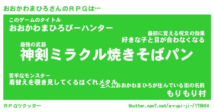 | 伝説のあだ名 | 『不死鳥の竜騎士おおかわまひろ』 |