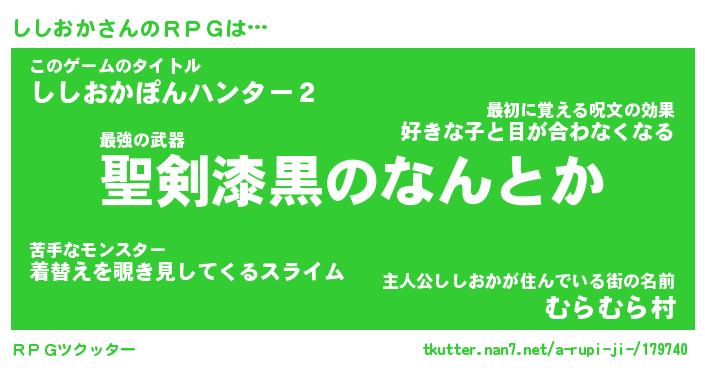 | ヒーロー風カッコイイあだ名 | 『スーパーシシオカ』『天弓騎士シシ』 |
