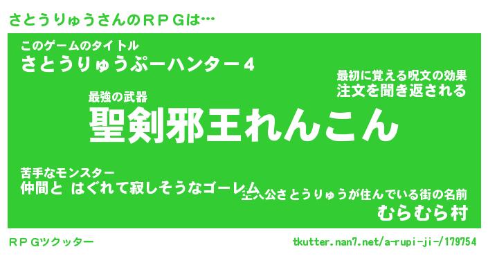 | ヒーロー風カッコイイあだ名 | 『スーパーサトウリュウ』『天弓騎士サト』 |