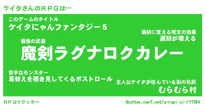 | ファンタジー風あだ名 | 『ケイフェル』『エターナルケイター』 |