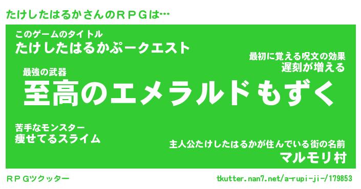 | 男性向けラノベタイトル風あだ名 | 『タケシタハルカアートオンライン』 |