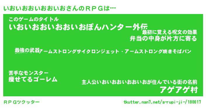 | 男性向けラノベタイトル風あだ名 | 『いおいおおいおおいおの憂鬱』 |