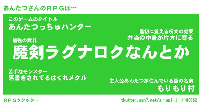 | 伝説のあだ名 | 『伝説の竜騎士あんたつ』 |