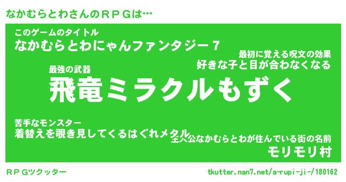 | 伝説のあだ名 | 『封印されし竜騎士なかむらとわ』 |