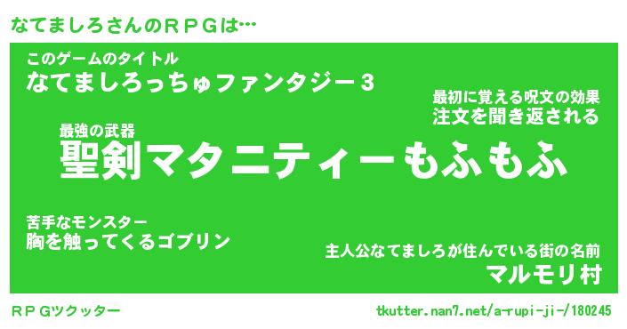 | ファンタジー風あだ名 | 『ナテフェル』『エターナルナテマシロー』 |