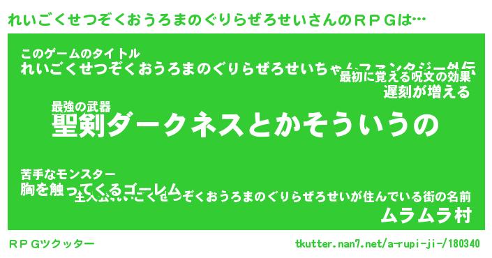 | 男性向けラノベタイトル風あだ名 | 『れいごくせつぞくおうろまのぐりらぜろせいの憂鬱』 |
