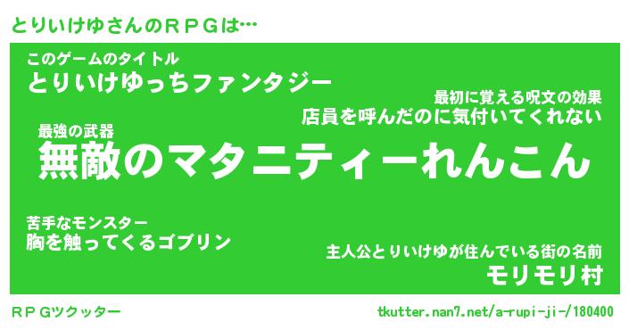 | 男性向けラノベタイトル風あだ名 | 『トリイケユアートオンライン』 |