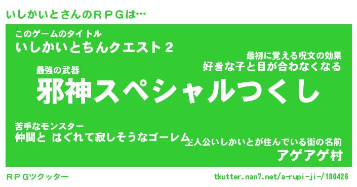 | 男性向けラノベタイトル風あだ名 | 『イシカイトアートオンライン』 |