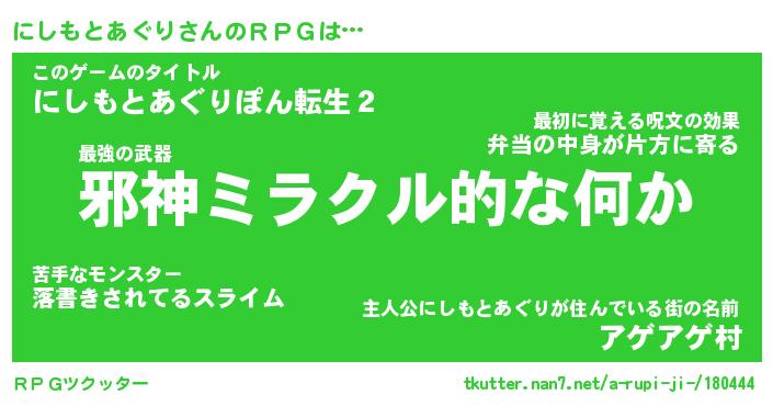 | 胡散臭い通販商品みたいなあだ名 | 『億万長者になれるブレスレット…その名も「にしもとあぐり」』 |