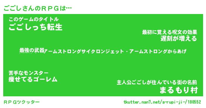 | 男性向けラノベタイトル風あだ名 | 『ゴゴシアートオンライン』 |