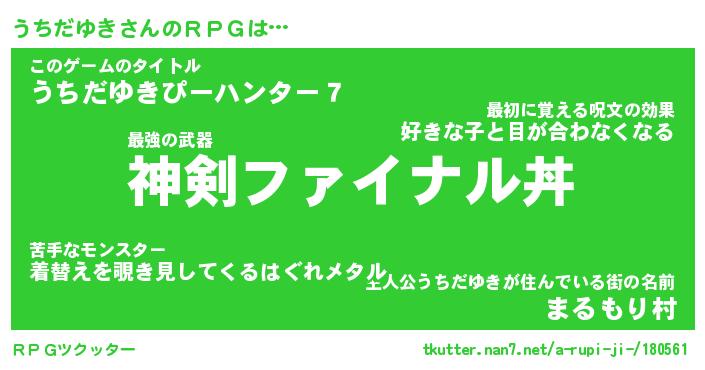 | 女子向けラノベタイトル風あだ名 | 『うちだゆき姫と円卓の騎士』 |