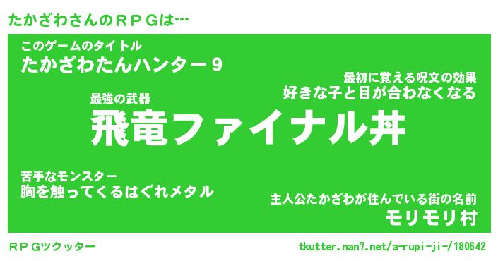 | 伝説のあだ名 | 『封印されし竜騎士たかざわ』 |