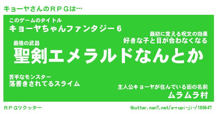| 胡散臭い通販商品みたいなあだ名 | 『必ず成功する霊験あらたかなお札…その名も「キョーヤ」』 |