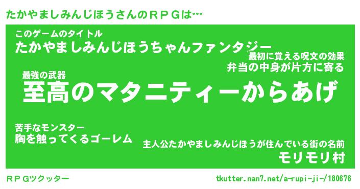 | 胡散臭い通販商品みたいなあだ名 | 『モテモテ間違いなし霊験あらたかなお札…その名も「たかやましみんじほう」』 |