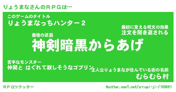 | ファンタジー風あだ名 | 『リョフェル』『エターナルリョウマナー』 |