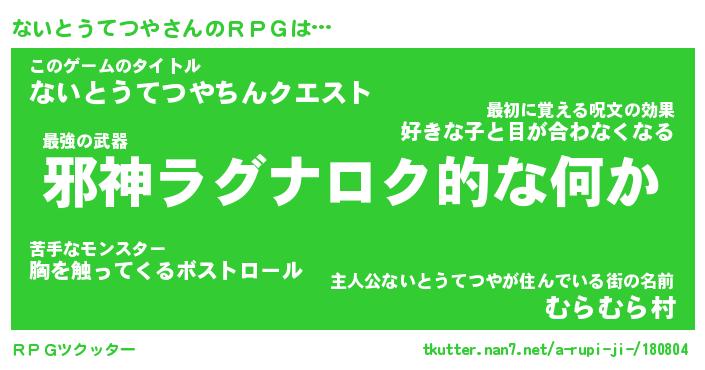 | 男性向けラノベタイトル風あだ名 | 『ナイトウテツヤアートオンライン』 |