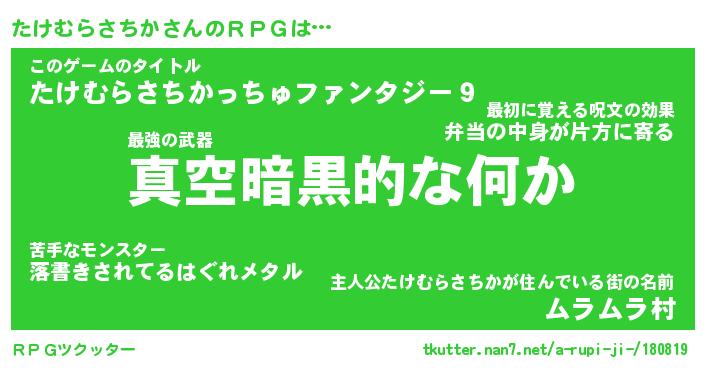 | 男性向けラノベタイトル風あだ名 | 『タケムラサチカアートオンライン』 |