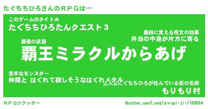 | 肩書あだ名 | 『たぐちちひろ社長』『たぐちちひろ班長』 |