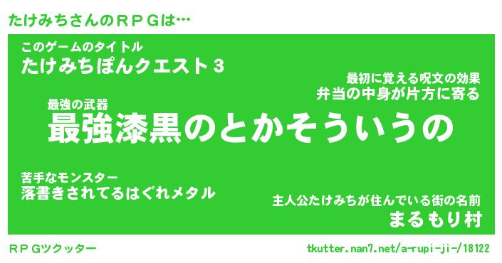 | 男性向けラノベタイトル風あだ名 | 『タケミチアートオンライン』 |