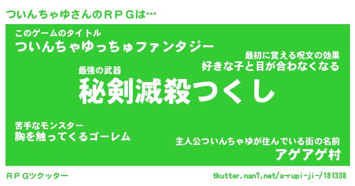 | 胡散臭い通販商品みたいなあだ名 | 『モテモテ間違いなし霊験あらたかなお札…その名も「ついんちゃゆ」』 |