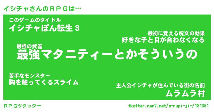| ファンタジー風あだ名 | 『イシフェル』『エターナルイシチャー』 |
