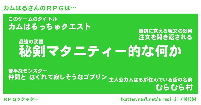 | 胡散臭い通販商品みたいなあだ名 | 『必ず成功する霊験あらたかなお札…その名も「カムはる」』 |
