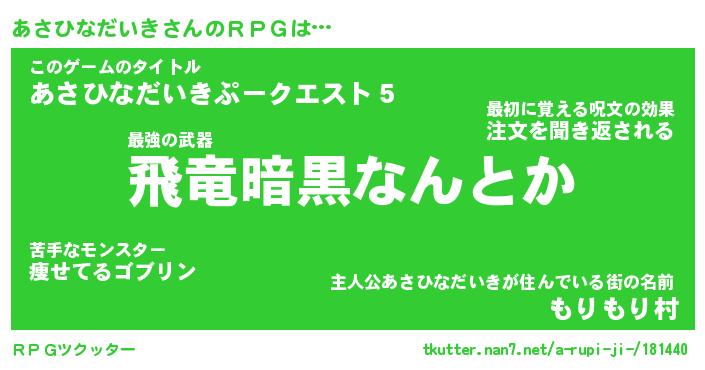 | 伝説のあだ名 | 『封印されし傭兵あさひなだいき』 |