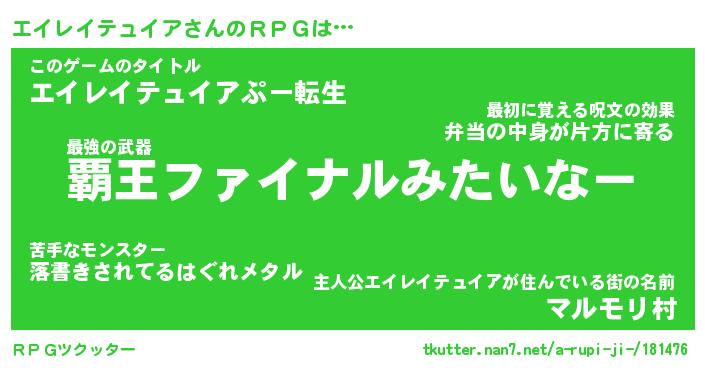 | 男性向けラノベタイトル風あだ名 | 『エイレイテュイアアートオンライン』 |