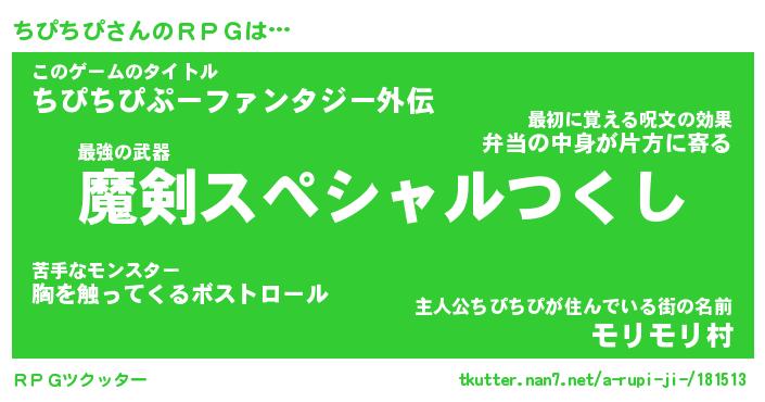 | 伝説のあだ名 | 『伝説の竜騎士ちぴちぴ』 |