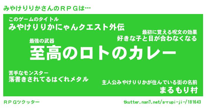 | 男性向けラノベタイトル風あだ名 | 『ミヤケリリカアートオンライン』 |
