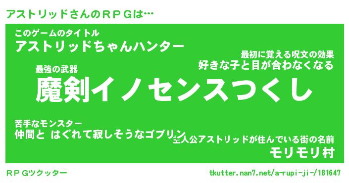 | 男性向けラノベタイトル風あだ名 | 『アストリッドの憂鬱』 |